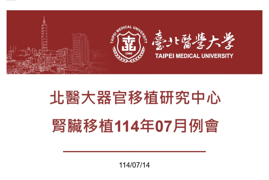 114 07 RCOT 腎臟移植討論月會 時間:11 4 年 07 月 14 日 地點:視訊會議 主席:吳美儀 副院長 列席指導:與會人員(職稱敬略) 北醫:洪進昇、劉明哲、陳錫賢、方德昭、江仰仁、陳文倩、陳儷心 萬芳:張渭文、鄭仲益、張毓成、許軒豪、吳文婷、姜易醇 雙和:李伯璋、吳麥斯、李明哲、宋睿祥、洪麗玉、許博融、周大鈞、鄒凱亦、吳佳璋、詹秀珍、柯佳蓉、林雅津、李欣怡、江淑娟、牟家蓉 病例討論: 一、附醫 張珍美 醫師 二、Polycystic Kidney Disease and Kidney Transplant 萬芳 張渭文 醫師 三、腎移植與疫苗 雙和 詹秀珍 藥師