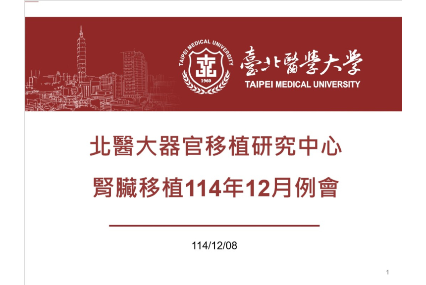 114 12 RCOT 腎臟移植討論月會 時間:11 4 年 12 月 08 日 地點:視訊會議 主席:江仰仁 主任 列席指導:與會人員(職稱敬略) 北醫:洪進昇、劉明哲、陳錫賢、方德昭、江仰仁、陳文倩 萬芳:張渭文、鄭仲益、張毓成、許軒豪、吳文婷、姜易醇 雙和:李伯璋、吳麥斯、李明哲、宋睿祥、洪麗玉、許博融、周大鈞、鄒凱亦、吳佳璋、詹秀珍、柯佳蓉、林雅津、李欣怡、江淑娟 病例討論: 一、林OO - 附醫 江仰仁 醫師 二、鍾OO - 萬芳 林京吾 醫師